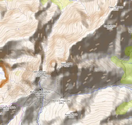 | Voie la plus facile | Versant ouest puis arête sud-ouest depuis le refuge de Ciottulu a i Mori |