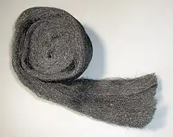 La paille de fer est un enchevêtrement de copeaux métalliques minces et allongés, généralement en acier inoxydable, utilisé pour son pouvoir abrasif.