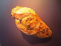 Les vestiges les plus reculés de pain remontent à l'époque prédynastique. Tout au long de l'histoire, les anciens Égyptiens ont placé des provisions dans les tombes pour assurer au mort sa subsistance dans l'au-delà. Les nécropoles de l'époque gerzéenne (-3650, -3400) ont conservé des restes de pain levé (Peters-Destéract[9], 2005). Un repas funéraire, bien conservé dans la tombe Saqqarah 3477 de la deuxième dynastie (-2850, -2647), contenait une miche de pain triangulaire, faite de blé emmer[10]. Dans la tombe de Kha, à Deir el-Médineh (XVIIIe dynastie, -1550, -1292), on a trouvé un échantillonnage presque complet des pains utilisés à l'époque.
