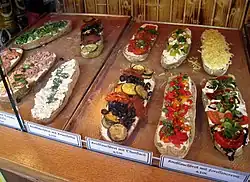 Il est à base de baguette ou de pain italien, tranché dans la longueur à la manière d'une grande tartine. Les tranches sont nappées d'huile d'olive, puis l'on ajoute de l'ail haché, du sel et du poivre, et bien souvent, des tomates et du basilic. Le pain peut être également coupé en tranches et ensuite grillé. Il est apprécié avec du fromage, tel que la mozarella, et il peut être relevé par des oignons, voire des poivrons ou du piment.
