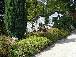 Petit jardin caché entre quatre murs, le cimetière a été laissé intact à la construction du parc.