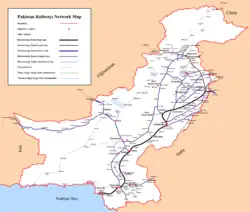 Lors de la création du Pakistan en , le réseau ferré dont hérite le pays est de 8 000 kilomètres. Le gouvernement pakistanais continue son développement avec de nouvelles lignes pour relier Mardan et Charsadda en 1954. Une autre ligne reliant Kot Adu à Kashmore est construite entre 1969 et 1973[4].