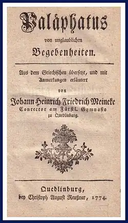 - Palaiphatos, Histoires incroyables [détail des éditions] (lire en ligne)