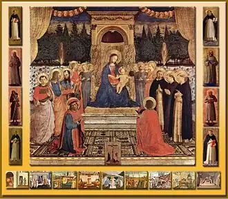Commencé au couvent San Domenico di Fiesole, il est destiné ensuite, les Médicis ayant racheté les droits de l'emplacement[1], à la chapelle du maître-autel de l'église du couvent de San Marco dominicain de Florence ; encadré de pilastres corinthiens par Michelozzo, le retable s'inscrivait dans l'exacte architecture préparée pour lui.