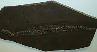 Reconstitution de Palaeopleurosaurus posidoniae au Musée d'Histoire naturelle de Stuttgart.