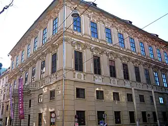 - (de) Cet article est partiellement ou en totalité issu de l’article de Wikipédia en allemand intitulé « Palais Attems » (voir la liste des auteurs).