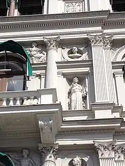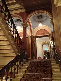 Le style du bâtiment a été calqué sur la Renaissance vénitienne. En 1879 le peintre Carl Larsson a été chargé de la décoration du plafond et des lunettes [5].