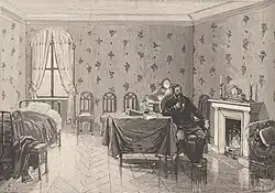 Vue de la même salle pendant le premier empire, avec une statue de Napoléon derrière le bureau du président.