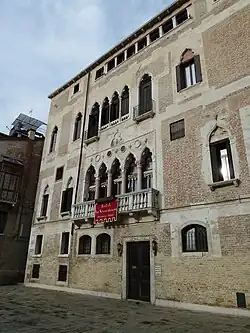 La façade principale du XVe siècle est divisée en deux étages (en plus du rez-de-chaussée et du grenier) : elle est asymétrique en raison de la structure particulière du terrain et caractérisée par une fenêtre à pentafore avec des piliers en marbre rose de Vérone (donnant sur un balcon à colonnades), agrémenté d'inserts circulaires en marbre et de reliefs sculpturaux ainsi que de hauts-reliefs byzantins du Xe siècle. L'arrière de la façade est caractérisé par deux petits balcons, aux premier et deuxième étages[1].