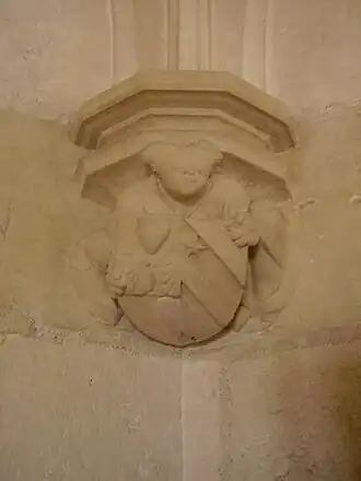 - ↑ Décor de losanges quadrilobés, avec les trumeaux percés de niches peu profondes se terminant par des arcs en accolade fleuronnée.