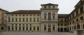 Située à l'est, entre la rue et la Vltava (ou, plus précisément le bras mort de la Vltava qui ceint l'île Kampa), l'aile baroque du palais, construite entre 1630 et 1645, est l'œuvre de Francesco Caratti. Cet édifice massif rassemble une foule de détails architectoniques d'inspiration italienne : pilastres toscans au rez-de-chaussée, corinthiens à l'étage, alternance de frontons brisés et classiques, frise dorique à métopes et triglyphes, fenêtres grillagées, niches, oculus, balcon à loggia.