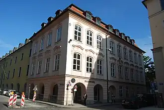 Le bâtiment mansardé de trois étages avec onze axes de fenêtres est dû à l’ancien architecte de la Theatinerkirche Lorenzo Perti en 1675. En 1731, pour le comte Ferdinand de Minucci, le bâtiment actuel a été construit dans un style baroque tardif avec une façade de style rococo. En 1954-1957, une extension a été construite sur la Salvatorstraße pour le ministère de la Culture. De 1893 à 2012, c'était la maison de la librairie Hugendubel. Puis, un décorateur de salle de bain s’installa dans les chambres de Hugendubel.