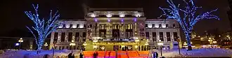 L'entrée du bâtiment- L'arrière du Palais Montcalm à Québec. Alors que la façade est plane, l'arrière est courbe.