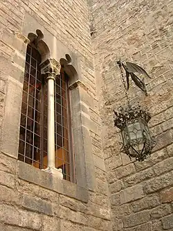 Le bâtiment fut construit au XIIIe siècle en style gothique, mais a été modifié par la suite. Il a été édifié sur la muraille romaine. La façade a été refaite, sûrement, au XVIe siècle, ainsi que la cour gothique, transformée au XVIIe siècle. Plusieurs fenêtres bifores et trifores gothiques s'ouvrent sur les murs de la cour.