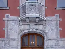 La tour rappelle quelque peu les premiers gratte-ciel américains, mais le bâtiment est fondamentalement conçu dans un mélange de romantisme national et d'Art nouveau qui était relativement typique du début du XXème siècle. La façade est crépie et peinte d'une couleur rouge rouille et ornée de bandes horizontales et d'autres décorations en pierre calcaire avec des détails Art Nouveau. Les façades sont dotées de baies vitrées et de balcons. Le bâtiment était destiné principalement à être résidentiel, mais aussi d'abriter des bureaux.