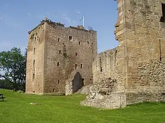 Les bâtiments les plus considérables furent construits entre la fin du XVe siècle et le XVIe siècle lorsque la tour de David, aussi connue comme la tour de Davey, fut bâtie ainsi que d'autres zones importantes de logements. La tour est la plus grande en volume de toutes les tours médiévales d'Écosse, mesurant 19 par 13,5 m et 22 m en hauteur. Elle fut commencée par l'évêque David Stewart et complétée sous William Tulloch[4]. Elle est faite de six étages, avec une mansarde au sommet, et d'un sous-sol voûté à environ 1,5 m sous la cour. Elle contient un donjon circulaire de 5,3 m de diamètre, éclairé seulement par une meurtrière étroite dirigée vers l'ouest, et avec un toit légèrement voûté en forme de dôme[6]. Le hall se trouve au rez-de-chaussée, mesurant 12.8 par 6,7 m et éclairé par de grandes fenêtres ; des sièges en pierre sont taillés dans la masse[6]. Au coin nord-est se trouve un escalier en spirale qui conduit aux étages supérieurs, chacun étant d'une conception similaire avec une pièce de grande taille à partir de laquelle il est possible d'accéder à de plus petites chambres. La tour est simple et manque presque de particularités architecturales. Les murs extérieurs furent initialement crépis tandis que les murs internes était plâtrés[4].