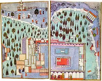 - ↑ (tr)Şadırvan signifie « fontaine des ablutions ».