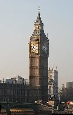 L’une des attractions les plus célèbres du palais de Westminster est sa tour de l'Horloge (Clock Tower), nommée officiellement « tour Élisabeth » (Elizabeth Tower) à l'occasion du jubilé de diamant d'Élisabeth II en 2012, qui abrite Big Ben.