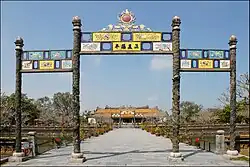 Dans chaque compartiment, est suspendue une lanterne hexagonale ou octogonale. En 1839, le roi Minh Mang avait ordonné de repeindre en rouge et de dorer toutes les parties en bois, ce qui embellit encore ce palais historique.