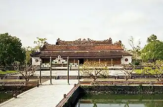En 1833, le Roi Minh Mang déplaça ce palais à l’endroit actuel, sur un terrain surélevé de 2,3 m[2].