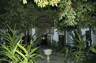 Cour d'Honneur en marbre de Carrare et zellige, et chambres des concubines du harem du palais. | ||||