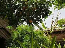 Au nord de la Grande Cour se trouve une autre vaste cour connue sous le nom de Grand Riad ou Grand Riad[4]. Avec ses chambres adjacentes, il est la partie la plus ancienne du palais et date de l’époque du père de Ba Ahmed, Si Musa[5],[6].La cour est occupée, comme son nom l’indique, par un très grand jardin de riad qui est encore planté d’arbres du XIXe siècle. Le jardin est flanqué à l’est et à l’ouest par deux grandes salles avec une excellente décoration et une inscription qui date de leur construction à 1866-67[7].