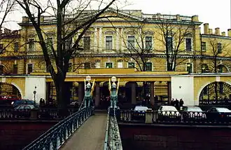Le palais se situe rue Sadovaïa et surplombe le Canal Griboïedov (anciennement connu sous le nom de "Canal de Catherine la Grande") et est relié à la rive opposée par le Pont de la Banque, caractérisé par 4 statues de griffons ailés. Le bâtiment a un plan semi-circulaire. La façade comporte un portique hexastyle et est décorée d'un buste de Quarenghi (1967) de Levon Lazarev. Ce bâtiment abrite depuis les années 1930 l'une des dépendances de l'université d'État d'économie et de finances de Saint-Pétersbourg.