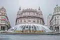 Le Palazzo sur la Piazza De Ferrari dans une carte postale à la fin des années 1930.