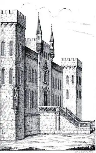 Le palais des Treize est construit entre 1315 et 1317 à Metz, face à la cathédrale Saint-Étienne. Il sert de siège des Treize, puis d’hôtel de Ville. Une gravure de Claude Chastillon (c. 1614) nous montre un bâtiment gothique remarquable, de plan rectangulaire, crénelé et flanqué d’échauguettes d’angles. Le palais présentait deux niveaux habitables, éclairés par de larges baies ogivales à double lancettes, d’un style gothique rayonnant classique, et d’un niveau sous combles. Une haute toiture en bâtière parsemée de lucarnes coiffait cet édifice à l’élégance altière[2].