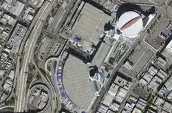 Le Los Angeles Convention Center fut inauguré en 1971 et agrandi en 1993. Il est ouvert en 1971 avec 19 573 m2 d'espace d'exposition, 21 salles de réunion et 857 m2 de d'espace d'enregistrement. L'expansion principale a été accomplie en 1993, ajoutant 32 300 m2 d'espace d'exposition, 43 salles de réunion et un théâtre de 299 sièges. Le Kentia Hall avec 15 050 m2 d'espace d'exposition a été ajouté en 1997. La même année, la partie nord-est du centre fut détruite pour laisser place au nouveau Staples Center.