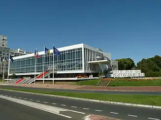 Édifié entre 1954 et 1957 afin de doter la ville d'un centre de congrès, cet édifice abrite à l'origine une salle de spectacle modulable, dix salles de commission, un hall de réception ainsi qu'un restaurant[4].