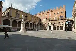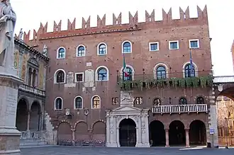 Dante Alighieri, exilé de Florence, fut accueilli pour son deuxième séjour dans cet édifice : en effet, la piazza dei Signori, qu'elle surplombe, est aussi appelée par les Véronais « piazza Dante », et au centre de la place se trouve une statue du poète au bas de laquelle est écrit :