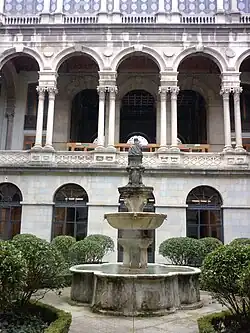 Au centre de la cour se trouve une fontaine, autour de laquelle est disposé un jardin. La fontaine provient de l'ancien Couvent de Saint-Domingue de la Guardia de Jaén, elle a été donnée en 1955 par ses propriétaires à l'Institut d'Études Giennenses pour qu'elle occupe la cour du Musée Provincial, jusqu'à ce qu'elle soit installée dans son emplacement actuel en 1961 ; elle est datée de 1577.