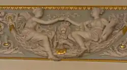 Au-dessus de la porte donnant sur l'escalier d'honneur, un bas-relief représente deux figures féminines se tenant la main au-dessus d'un lion couronné et tenant une épée et un faisceau de flèches. Il s'agit d'une représentantion de l'union des provinces du Nord (tenant un gouvernail) et des provinces du Sud (tenant une corne d'abondance) sous l'égide de la maison d'Orange-Nassau (représentée par le lion). Il s'agit donc du dernier véritable symbole néerlandais présent dans le palais, car le lion est toujours celui représenté sur les armoiries des Pays-Bas.