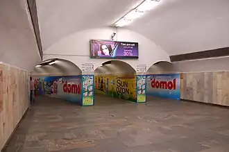 Elle dispose d'une relation piétonnière souterraine avec la station Palats sportou desservie par les rames de la ligne Sirets'ko-Petchers'ka (M3) du métro de Kiev[1].