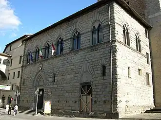 Le Palazzo comunale di Città di Castello, qui donne sur la Piazza Gabriotti est un édifice en pietra serena attribué à Angelo da Orvieto qui l'aurait construit entre 1322 et 1338.