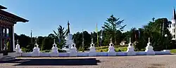 L'esplanade du temple est entourée de trente-six petits stupas de différentes formes.