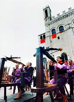 Ce tournoi est organisé par les Sociétés Arbalestières des villes de Gubbio et de Sansepolcro dans le cadre des fêtes consacrées à leurs saints patrons respectifs S. Ubaldo et S. Jean Evangéliste.