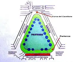 Quand Emmanuel-Philibert de Savoie assuma la régence de la ville (), il confirma et codifia les anciennes traditions de la fête patronale et engagea la famille de Savoie à fournir les palio: un de 12 rasi pour la course et un de 9 rasi à offrir au saint patron. (Le raso est une mesure ancienne piémontaise qui équivaut à 60 cm environ). Au cours du XVIIIe siècle, le palio est accouplé à un fanion en toile couleur azur, orné par les emblèmes de la maison de Savoie, de la commune, du gouverneur et du Podestà. L’image de S. Second à cheval apparut sur le fanion du Palio dédié à l’église et aussi sur celui de la course sur la fin du XIXe siècle . À son début la course se déroulait annuellement le 30 mars à l’occasion de la fête de S. Second. À partir du XVe siècle, elle fut déplacée en même temps que la célébration du saint, au premier jeudi suivant le dimanche après Pâques. Au cours des premières années du XIXe siècle, la course se déroula le deuxième dimanche après Pâques En 1818, la célébration de S. Second fut à nouveau déplacée au premier mardi du mois de mai et de fait la course aussi. En 1861, un nouveau règlement fut établi. Ce règlement pour la course de chevaux in giro sur la nouvelle place du marché (Piazza campo del Palio) changea radicalement la tradition de la course qui jusque-là était in lungo c'est-à-dire en parcourant un chemin rectiligne qui démarrait de Viale Pilone, passait par Porta San Piero,et en traversant le pont sur Rio Valmanera, continuait vers le boulevard Alfieri jusqu’au palais Gabuti de Bestagno (actuellement Palazzo Ottolenghi). En 1863, la course devint une banale course de chevaux et perdit sa traditionnelle signification religieuse.