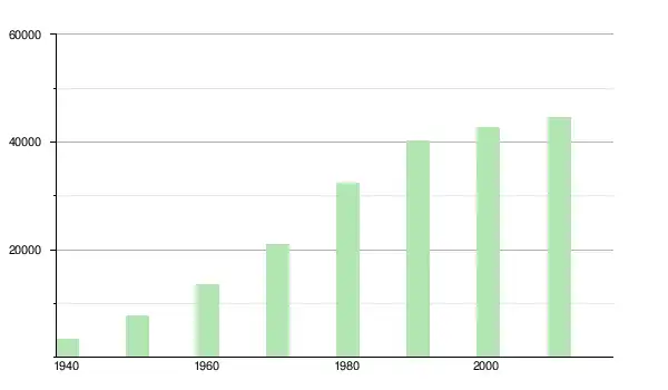 | 1960 | 13 468 | ▲ +75,82 % | |