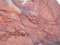 On trouve principalement du quartz, du mica, de la biotite et de la muscovite ainsi que de la magnétite, de la fluorapatite, du rutile, des chlorites, de la kaolinite et du minerai d'uranium .