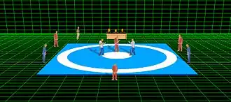 Concernant le combat en lui-même, toutes les techniques de pieds, poings, genoux et coudes contrôlées sont autorisées. La frappe au visage est autorisée selon certaines conditions et maîtrisée selon les catégories. Toutes les techniques de projections sont autorisées mais sans écraser volontairement l'adversaire dans le but de lui faire mal. Le combat arbitré par l’hellanodice (ἐλλανοδίκης, membre du jury) central et trois hellanodices périphériques, permet en outre de s'assurer, dans le respect des règles, de l'intégrité des combattants. Les frappes au sol ne sont pas autorisées. Toutes les techniques de soumission sont autorisées. Les clés par compression musculaires sont également autorisées. Les étranglements en revanche sont interdits.