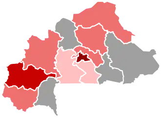 À la date du , 11 nouveaux cas sont enregistrés à Ouagadougou et 17 guérisons. Au total des cas, on compte 224 femmes et 352 hommes[54].