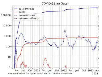 La pandémie de Covid-19 au Qatar démarre officiellement le . À la date du , le bilan est de 684 morts.