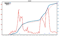 - Le , 16 nouveaux cas ont été confirmés. Deux patients hospitalisés sont décédés, tandis que 12 patients ont récupéré. Le nombre total s'élevait à 261 cas confirmés, trois décès et 37 patients guéris[30].