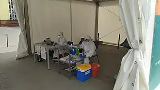 Le gouvernement met en place seize hôpitaux d'urgence -un par région- pour réagir à la deuxième vague de l'épidémie qui frappe durement la Pologne[4]. Ainsi, le stade national de Varsovie est transformé en hôpital provisoire[5].