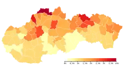 | Medzilaborce | 6 142 | 17 | 0,28 % |
