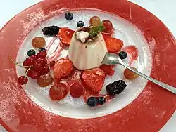 La panna cotta (terme italien signifiant « crème cuite ») est un dessert traditionnel de la cuisine italienne, originaire du Piémont[1], mais populaire dans toute l'Italie[2], à base de crème, de lait, de sucre et de gélatine.