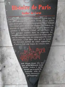 | 6 | La Place de l'École | Place de l'École | Disparu après juin 2015 (à la première vitrine du magasin) | 48° 51′ 32″ nord, 2° 20′ 30″ est | ![]() |