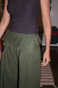 Le pantalon thaï ou pantalon de pêcheur (appelé localement Shan baun-mi), est un pantalon unisexe à taille unique, à la coupe très large, qui a pour particularité de rabattre par un jeu de pliage, l'excédent de tissu situé à la taille.